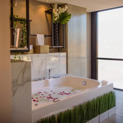 Ven y disfruta de nuestro espectacular Jacuzzi, ubicado en el Roff Top con una maraviillosa vista 360 a la ciudad. Disponible para todas las habitaciones